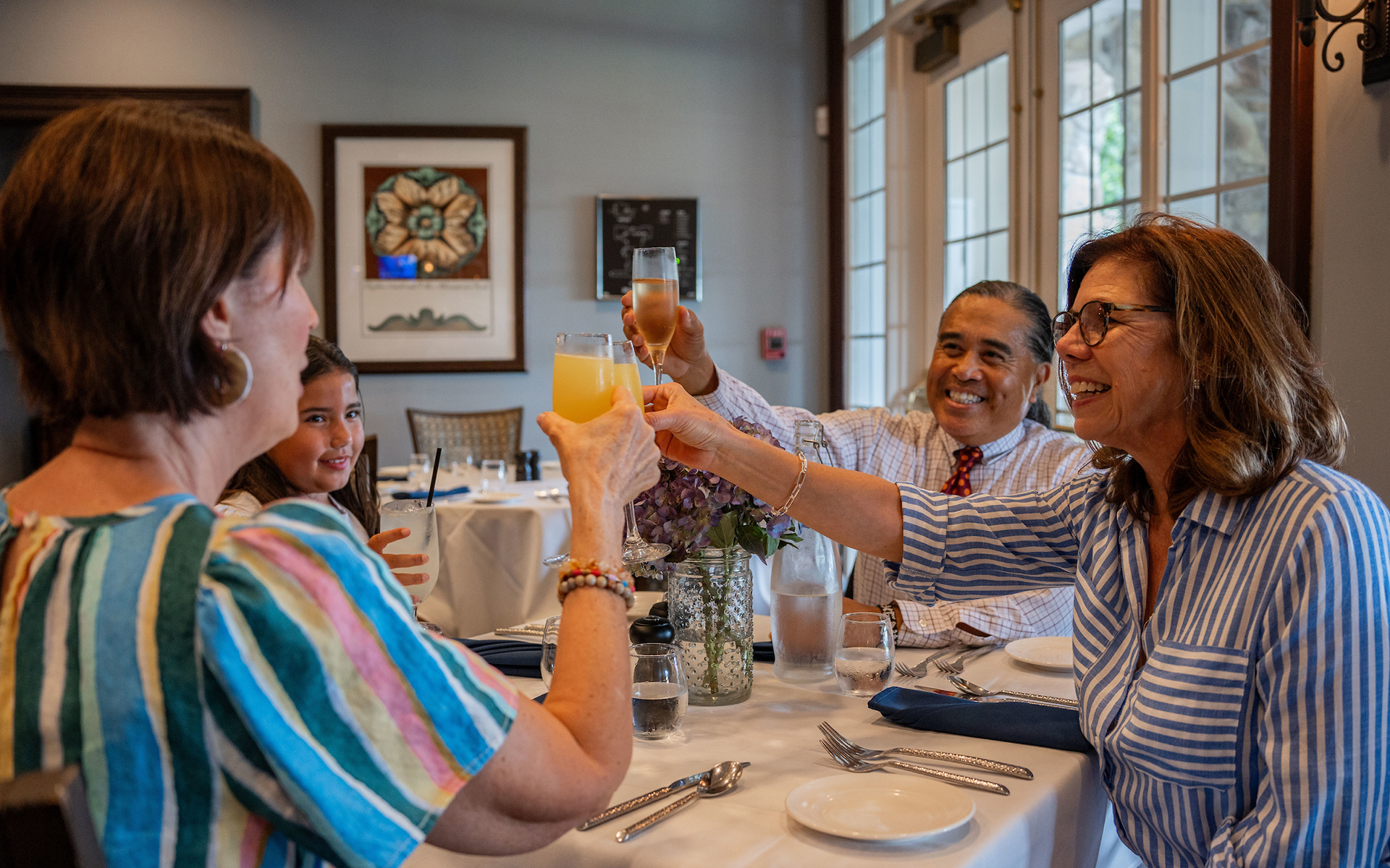 The majestic setting of the Clubhouse makes every dining experience a special occasion. Enjoy sweeping views of the golf course from the Lee's Table & Tavern's expansive windows or dine out on the patio and savor the view.