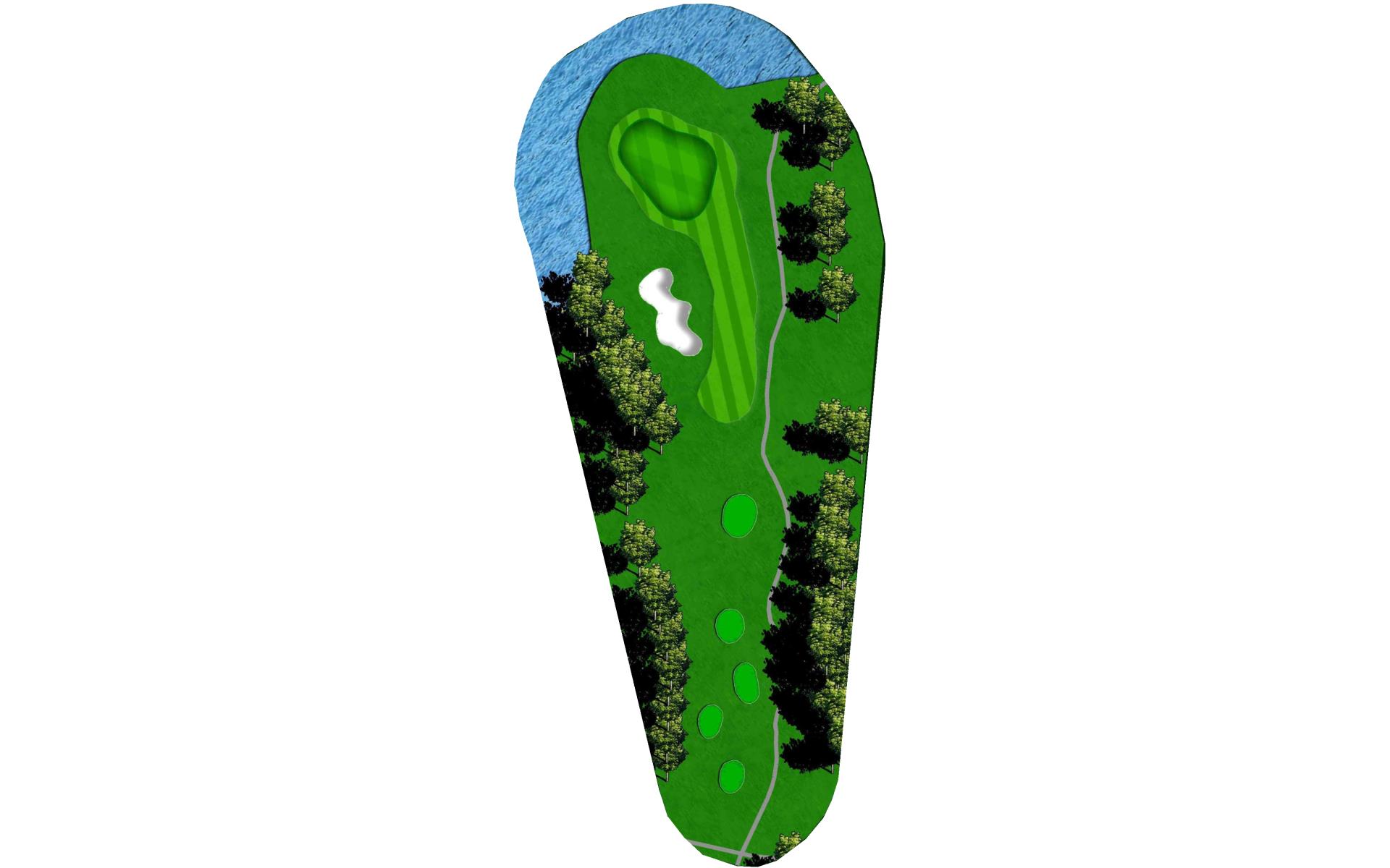 This well guarded green is best played by mid to long iron to the middle of the green. The green has false front and is surrounded by water and penalty area.